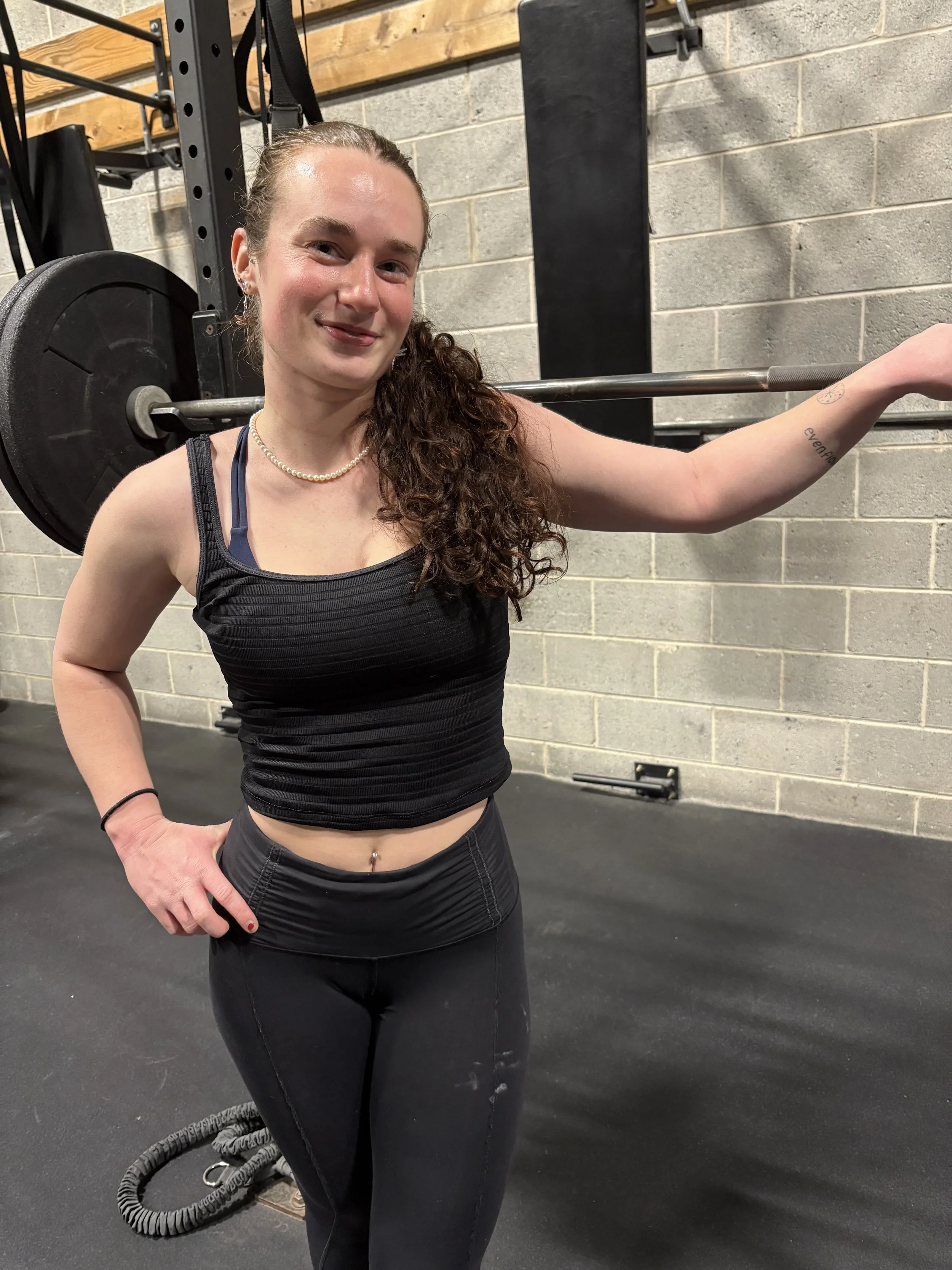 I started working out at Sandy Dog when I was 10 years old and quickly fell in love with the gym and its community. Ever since I was a teenager, I’ve dreamed of earning my Level 1 certification, and I’m proud to have completed it in January 2025 at the age of 20. I'm excited to now coach at Sandy Dog alongside the same people who coached me growing up, and to help others reach their goals.